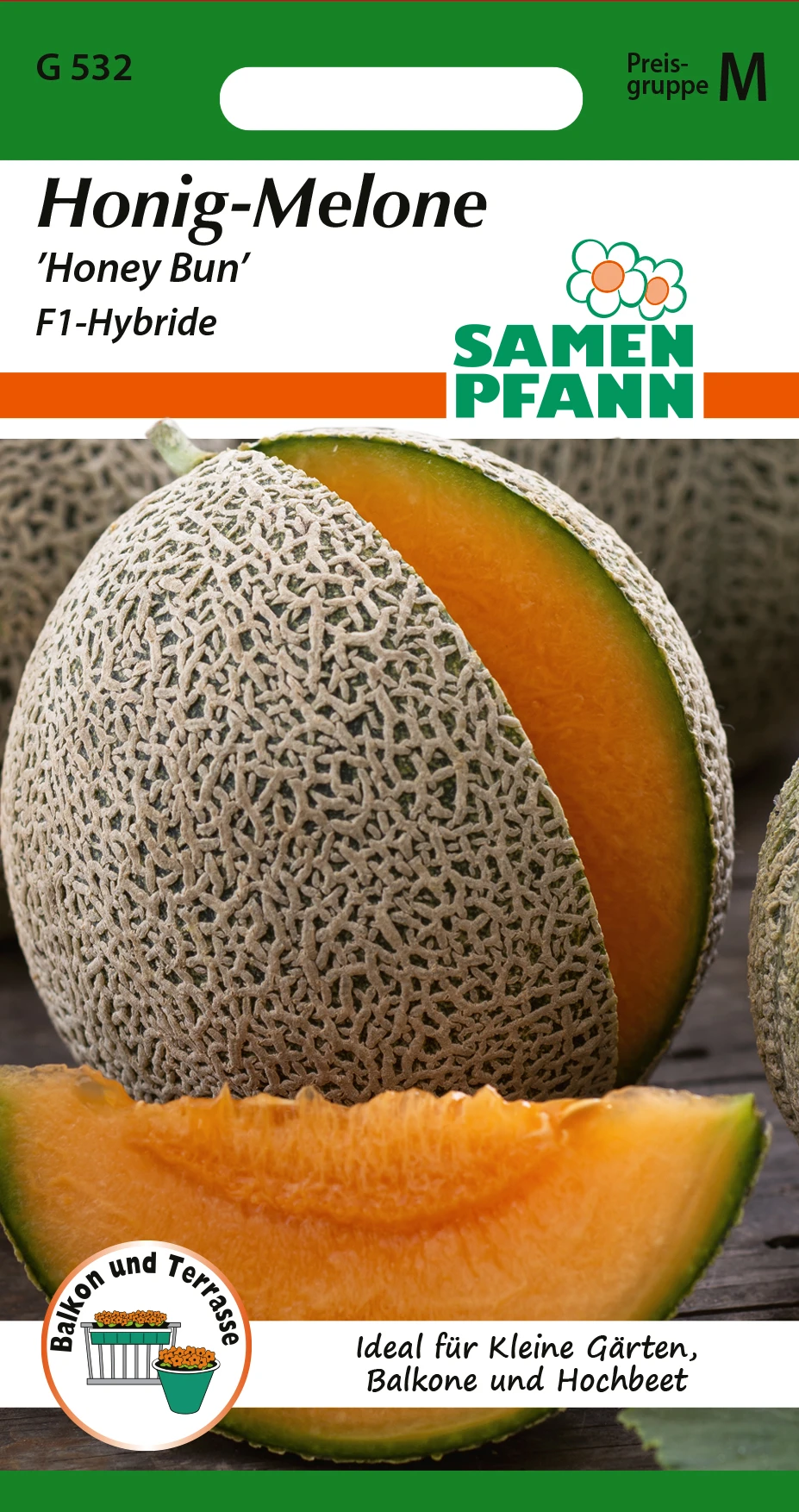 Sehr frühe Mini-Cantaloupemelone mit orangem Fleisch. Süß wie Honig. Produziert 3 bis 4 kleine Melonen pro Pflanze. Kompakte, buschige Sorte mit wenig Platzbedarf, ideal für Topfkultur oder den kleinen Garten. Gewicht 400-600g.