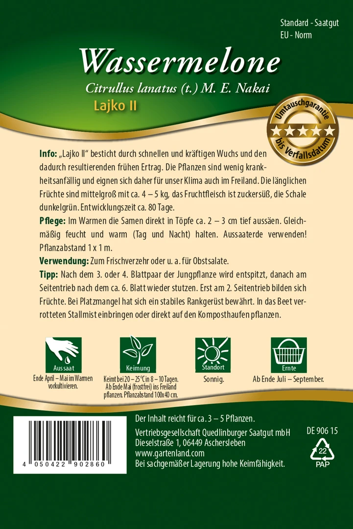 Im Warmen die Samen direkt in Töpfe ca. 2 – 3 cm tief aussäen. Gleichmäßig feucht und warm (Tag und Nacht) halten. Aussaaterde verwenden! Pflanzabstand 1 x 1 m